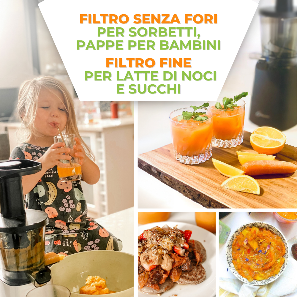 Perché comprare cibo per bambini costoso e pieno di ingredienti chimici? L'Optimum 600M Estrattore a freddo ti permette di preparare il tuo omogeneizzato per bambini con ingredienti sani e nutrienti che il tuo bambino adorerà.