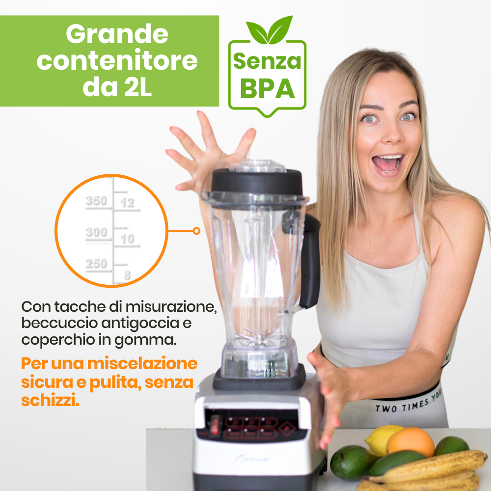 - Opzione di frullatura automatica per frullati (frulla automaticamente per un periodo di tempo prestabilito, perfetto per i bar di succhi di frutta e per le persone sotto stress; 20, 30 & 45 secondi)