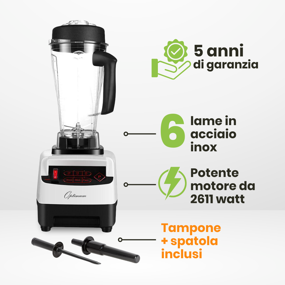 POTENTE: Con un motore da 2.611 watt, l'Optimum 9200A è più potente di altri frullatori presenti sul mercato