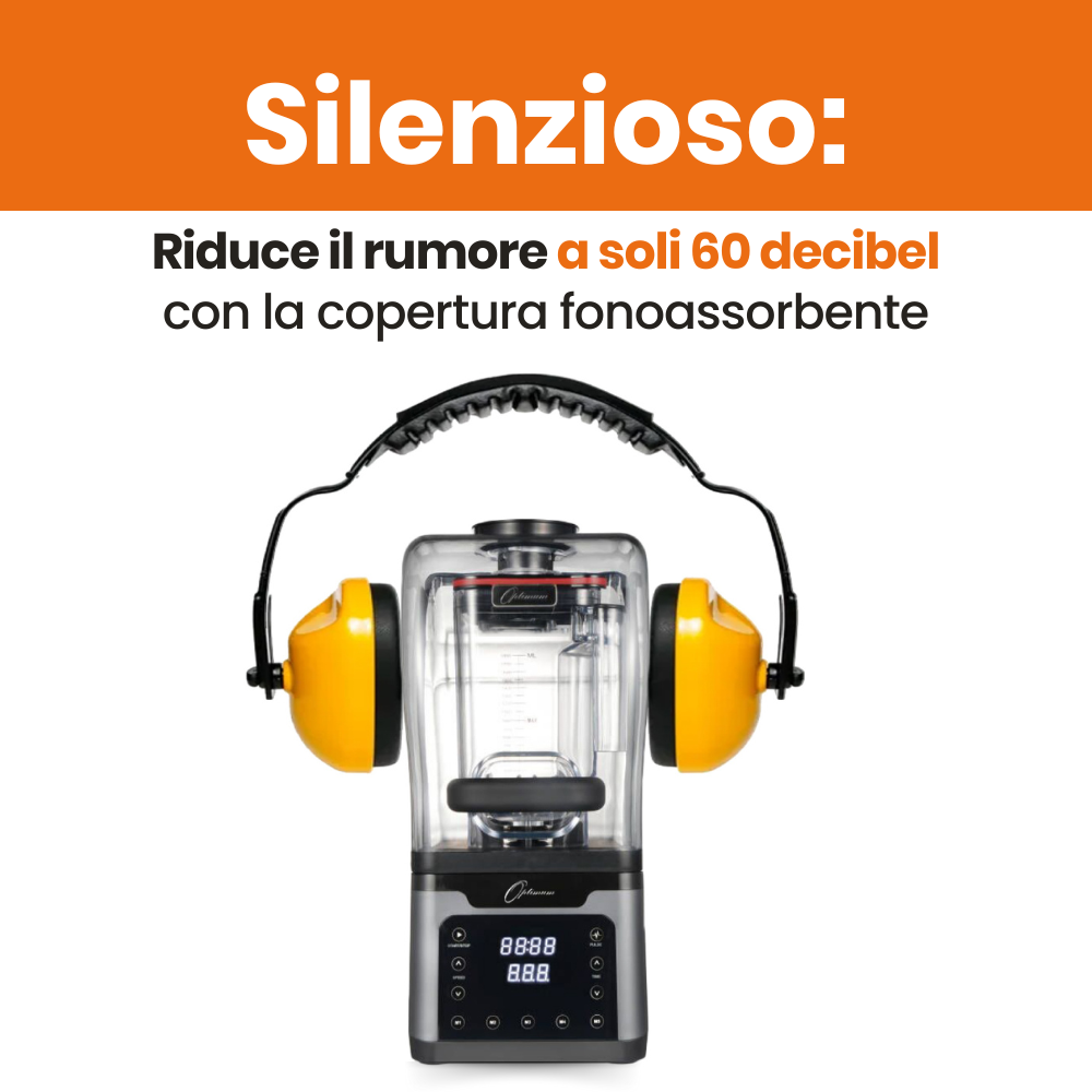 Test recenti hanno dimostrato che il motore dell'Optimum Vortex Blender è significativamente più silenzioso rispetto a quello dei concorrenti. Mentre normalmente funziona a soli 85–90 decibel, puoi ridurre il volume a soli 60 decibel con la copertura opzionale antirumore. Questo rende l'Optimum Vortex Blender ufficialmente il frullatore più silenzioso del settore – ideale per la tua famiglia o il posto di lavoro!
