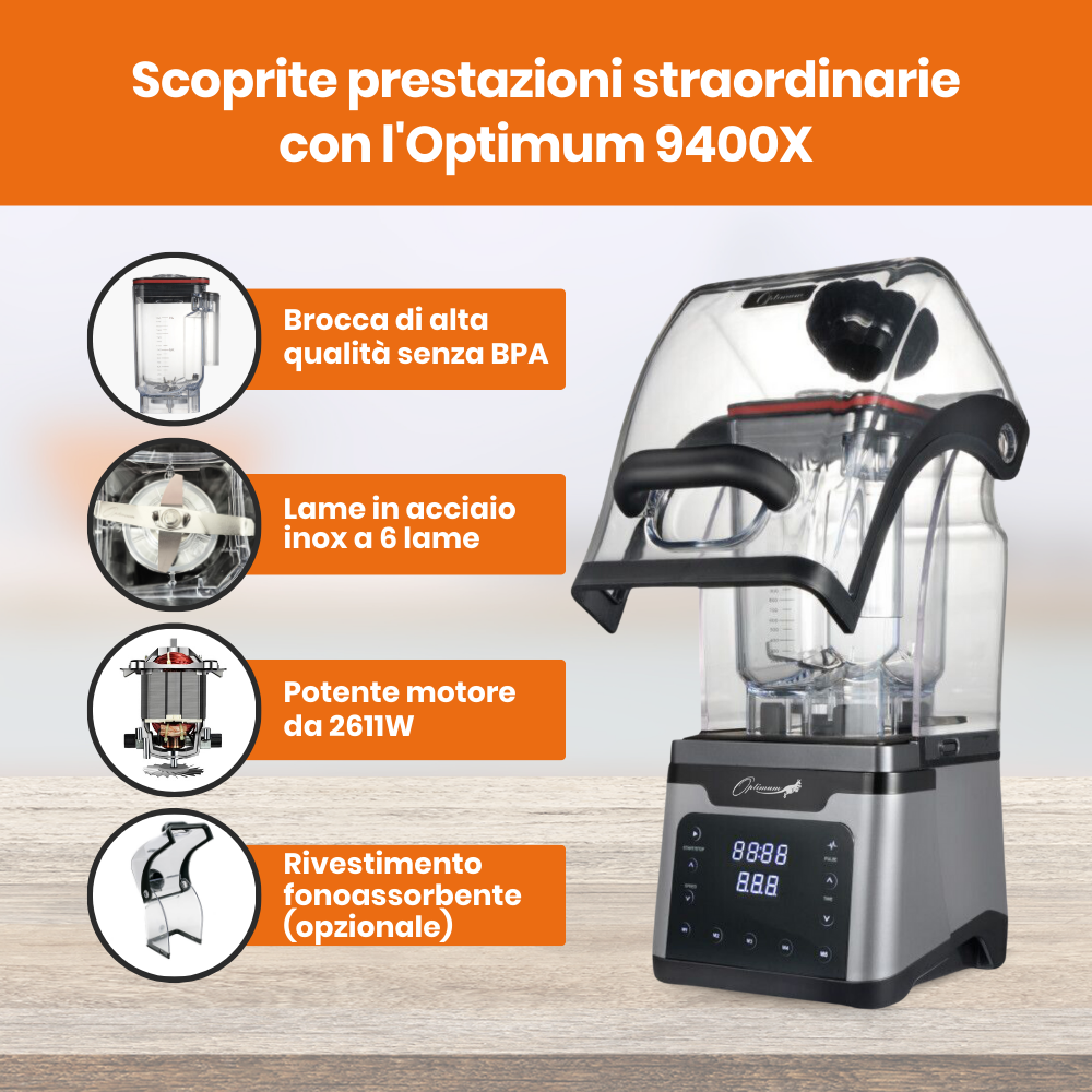 Optimum 9400X - Frullatore professionale ad alte prestazioni con isolamento acustico opzionale - Apparecchio da esposizione